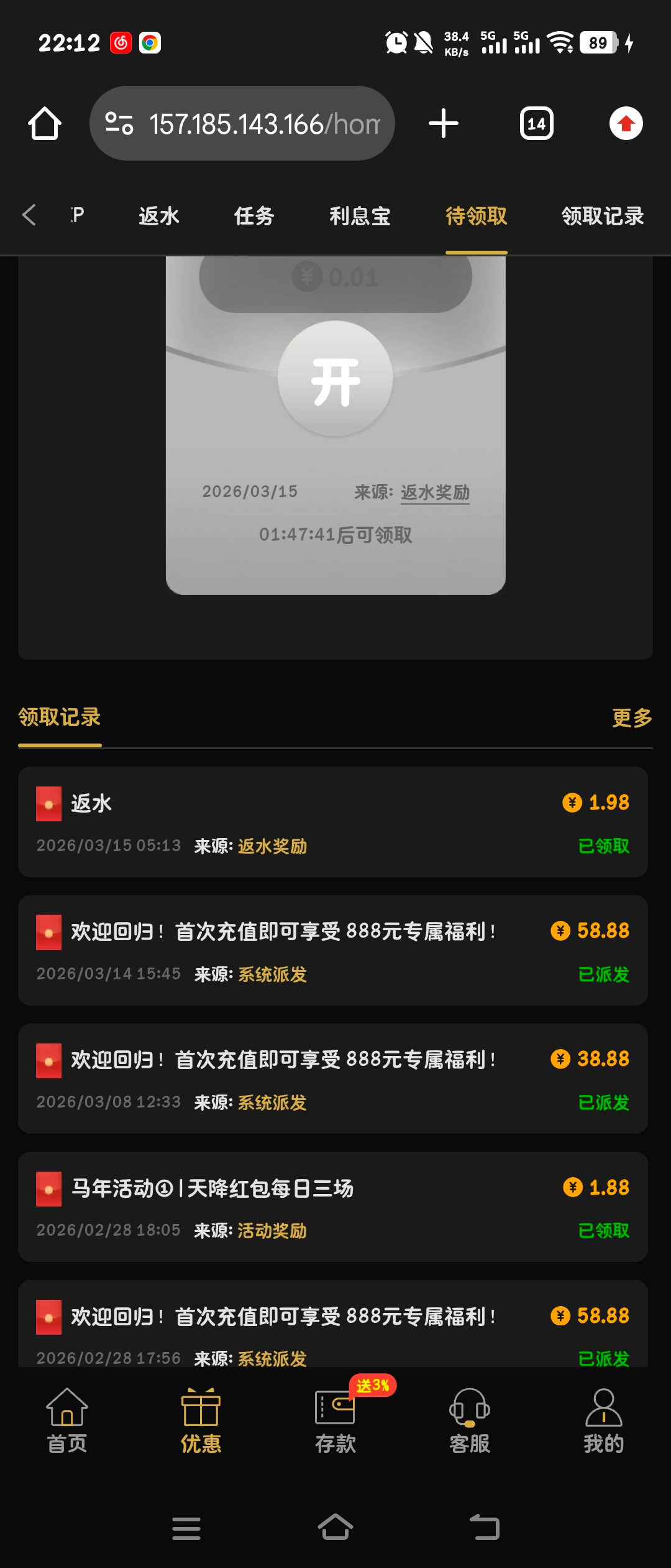 回访彩金 隔3-4天即可碰瓷一次 不接电话也有 玩过的去看看